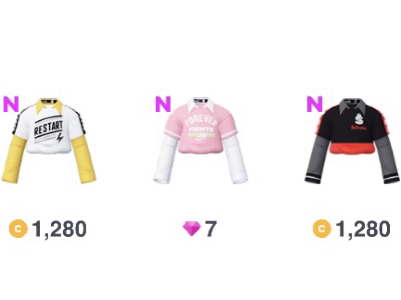 稀に無料でゲット可能なZem(ピンクのダイヤマーク)と、毎日ゲット可能なコイン(イエローのCマーク)で揃えられます。