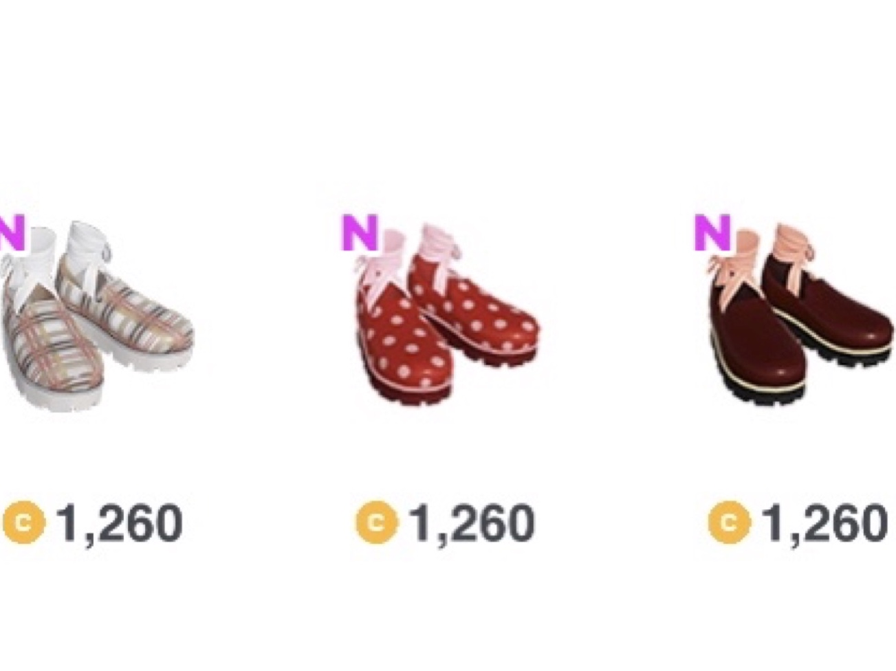 3デザイン×3色ずつのレザーシューズ類です。